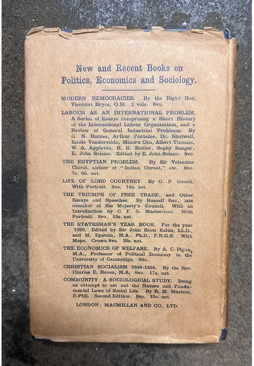 Macmillan and Company 1920,In original utalitarian clth binding and brown wrapper sge worn.
